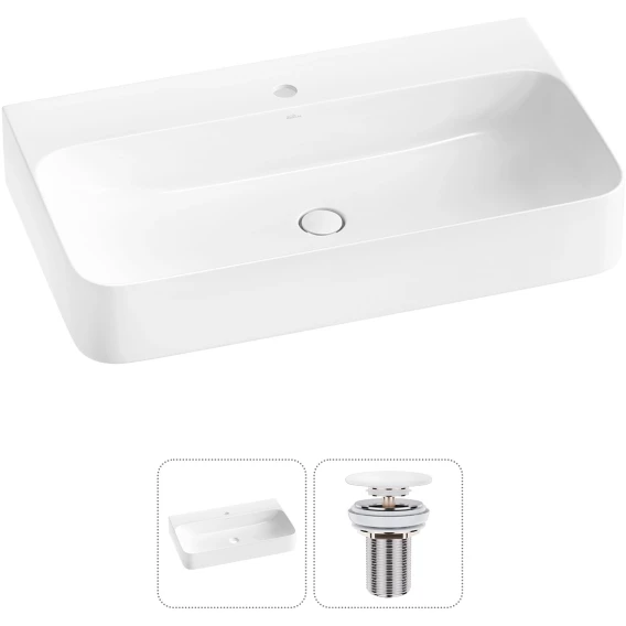 Раковина-чаша Wellsee Clermont 302603000 80x47 см, накладная, подвесная, белый, с донным клапаном в цвете белый