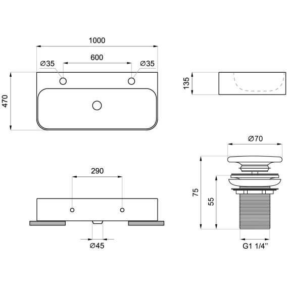 Раковина-чаша Wellsee Clermont 302605000 100x47 см, накладная, подвесная, белый, с донным клапаном в цвете белый