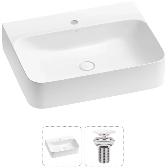 Раковина-чаша Wellsee Clermont 302609000 60x47 см, накладная, подвесная, белый матовый, с донным клапаном в цвете белый матовый