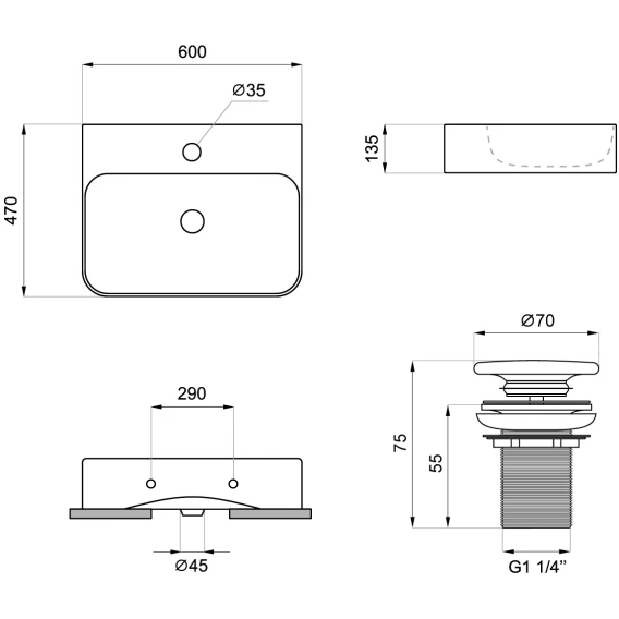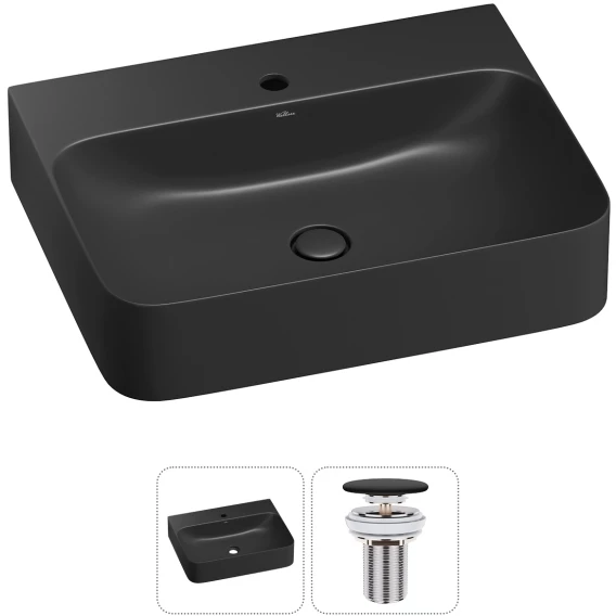 Раковина-чаша Wellsee Clermont 302610000 60x47 см, накладная, подвесная, черный матовый, с донным клапаном в цвете черный матовый