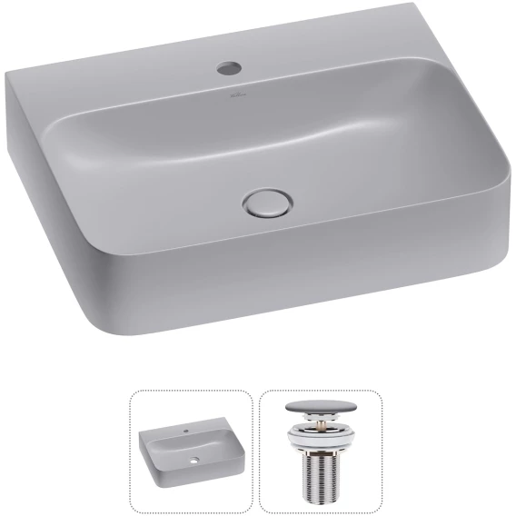Раковина-чаша Wellsee Clermont 302611000 60x47 см, накладная, подвесная, серый матовый, с донным клапаном в цвете серый матовый