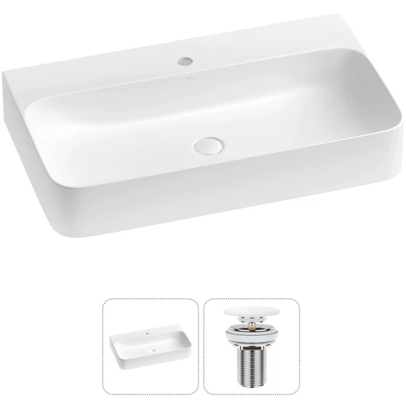 Раковина-чаша Wellsee Clermont 302612000 80x47 см, накладная, подвесная, белый матовый, с донным клапаном в цвете белый матовый