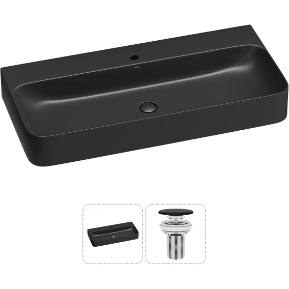 Раковина-чаша Wellsee Clermont 302616000 100x47 см, накладная, подвесная, черный матовый, с донным клапаном в цвете черный матовый
