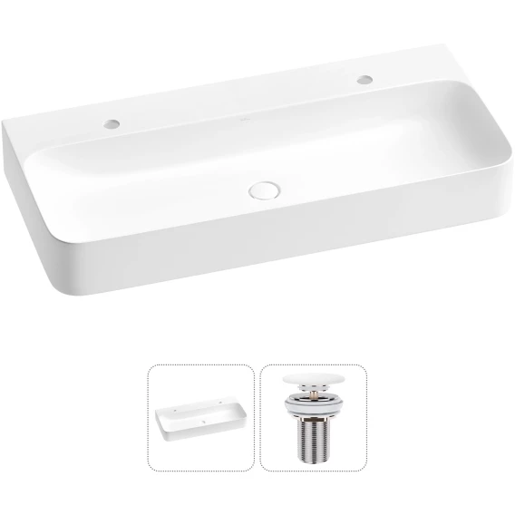 Раковина-чаша Wellsee Clermont 302618000 100x47 см, накладная, подвесная, белый матовый, с донным клапаном в цвете белый матовый