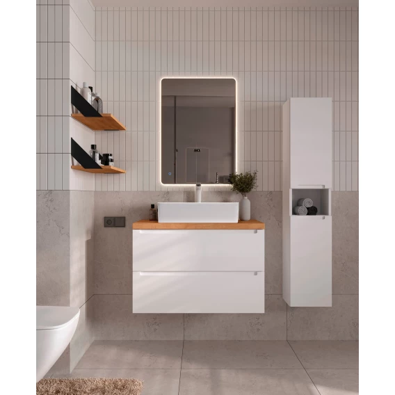Тумба под раковину ЗОВ Дион D80BD 79 см, подвесная, белый матовый/дуб медовый