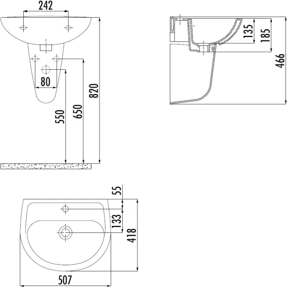 Раковина Creavit Oval TP150-00CB00E-0000 50,7x41,8 см, подвесная, белый