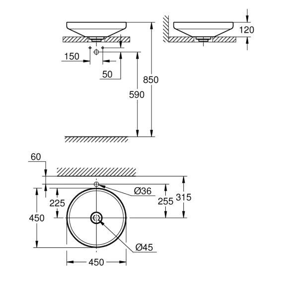 Раковина Grohe Airio 3995800H 45x45 см, альпийский белый