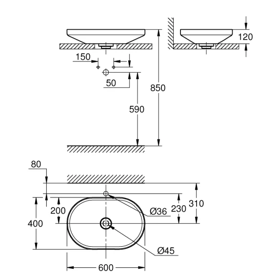 Раковина Grohe Airio 3996600H 60x40 см, альпийский белый