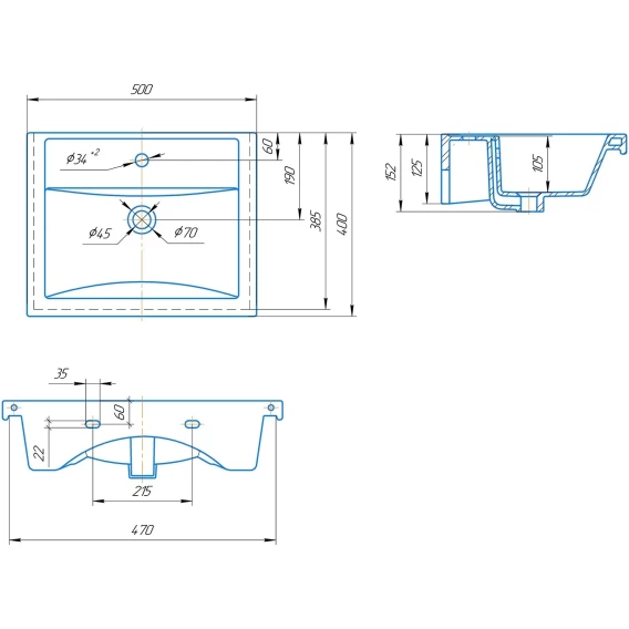 Намеченных отверстий для смесителя
