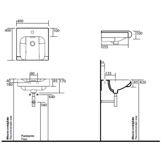 Раковина Kerasan Inka Project 341201*1 40x40 см, полувстраиваемая, белый
