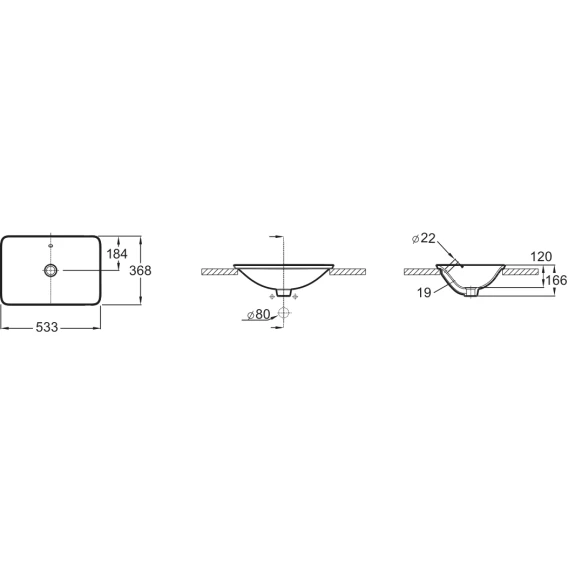 Раковина Kohler Carillon 96117T-0 53,3x36,8 см, встраиваемая сверху, белый