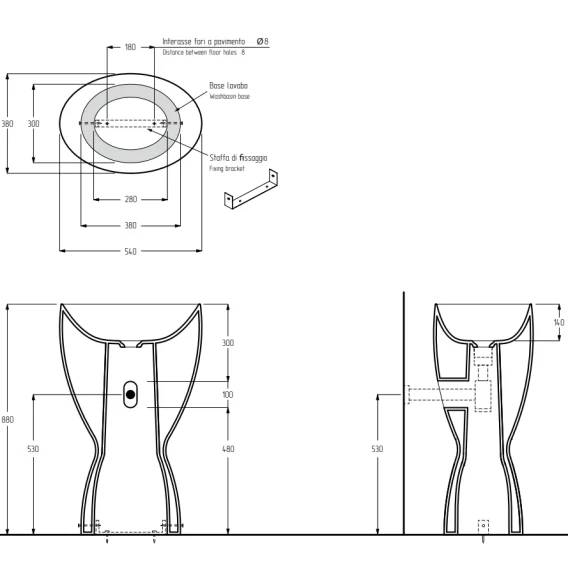 Раковина Migliore Lavabi Tonda 32082 54x38 см, напольная, белый глянец