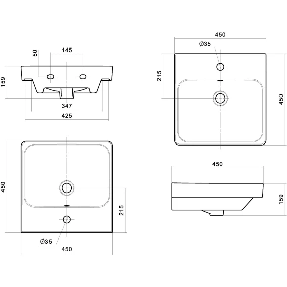Раковина Misty Адриана 1.WH50.1.630 45x45 см, накладная, подвесная, белый