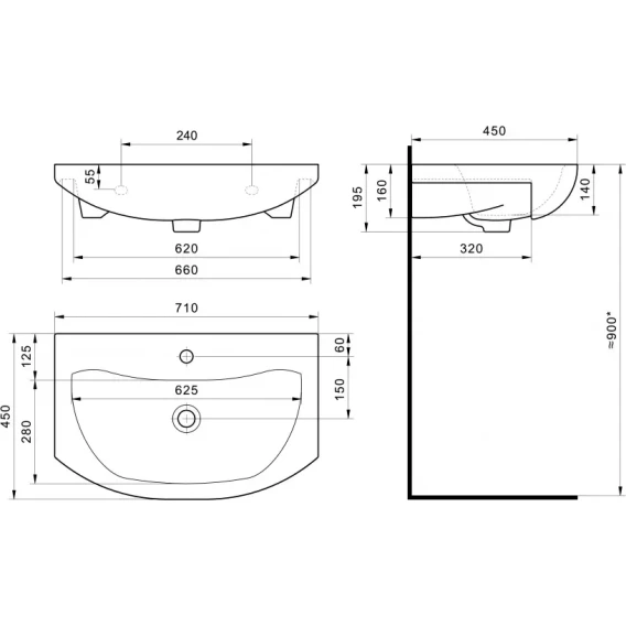 Раковина Misty Балтика 1.WH20.7.776 71x45 см, накладная, подвесная, белый