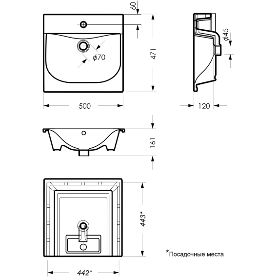 Раковина Misty Breeze WB.FN/Breeze/50-C/WHT.G/S1 50x47,1 см, накладная, белый