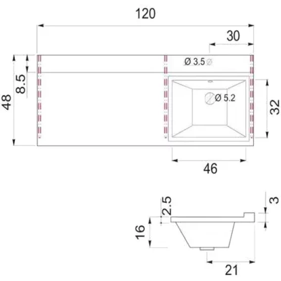 Раковина Misty Гавана 5217120 120x48 см R, над стиральной машиной, белый