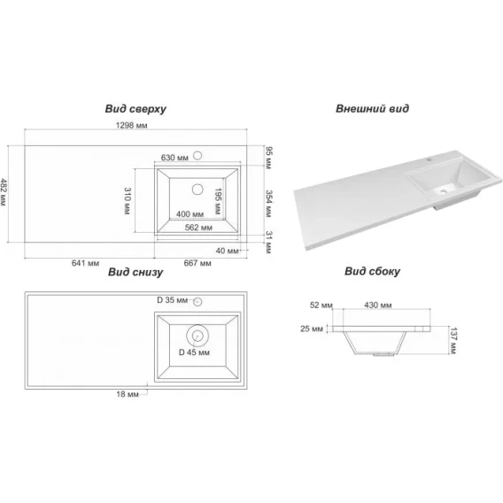 Раковина Misty Гавана 5219130 129,8x48,2 см R, над стиральной машиной, белый