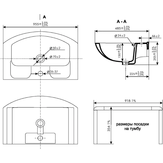 Готовых отверстий для смесителя