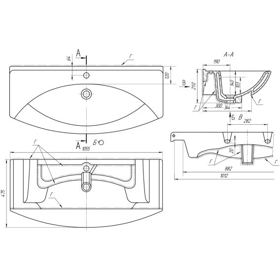 Раковина Misty Лагуна 191683 105,5x47,5 см, накладная, подвесная, белый