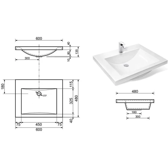 Раковина Misty Монако ФР-00000790 60x48 см, накладная, белый
