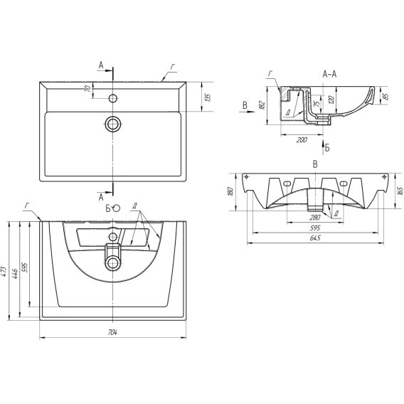 Раковина Misty Q 191645 70,4x47,3 см, накладная, подвесная, белый