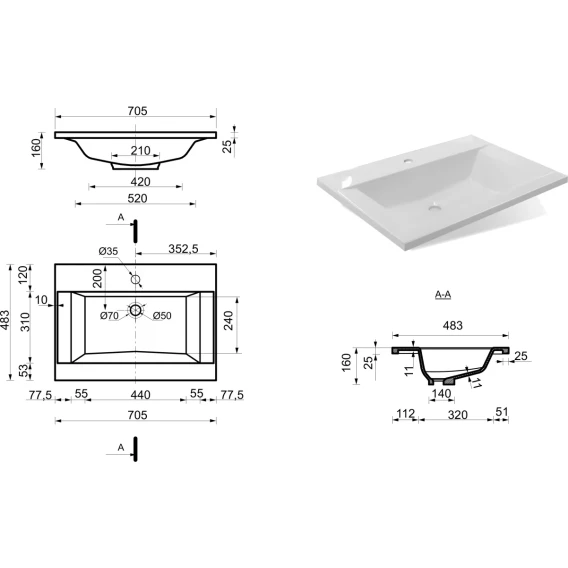 Раковина Misty Рава ФР-00002612 70,5x48,3 см, накладная, белый
