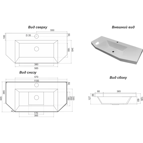 Раковина Misty Слим 5021100 110x44,5 см, накладная, белый