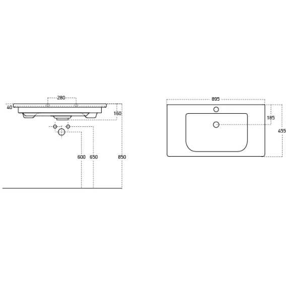 Раковина Misty Soft 13090-KL 89,5x45,5 см, накладная, подвесная, белый