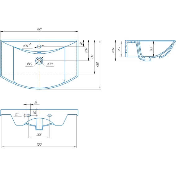 Раковина Misty Стиль 4620008197470 76x48,5 см, накладная, подвесная, белый