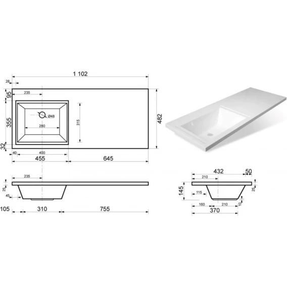 Кухонная мойка KuchenStern Ku-Granit Top 60 106TN10 56x50,5 см, титан