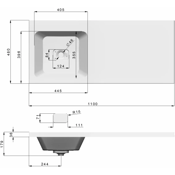 Раковина над стиральной машиной 110x48 см L Madera Kamilla 4627173210041