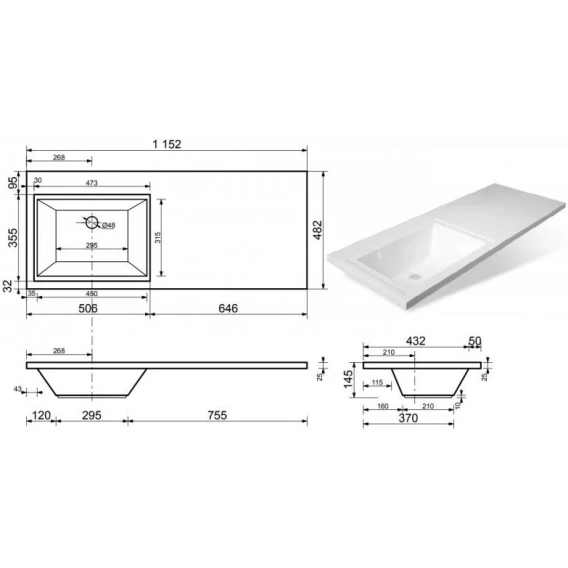 Раковина над стиральной машиной 115,2x48,2 см Style Line Даллас СС-00000518