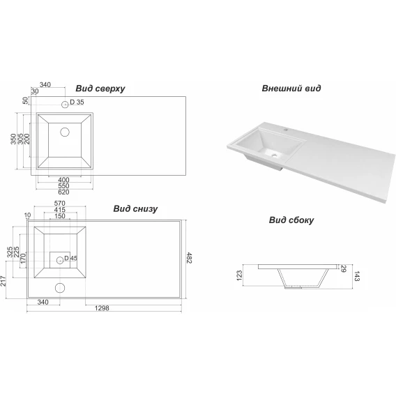Раковина над стиральной машиной 129,8x48,2 см Style Line Estetus Даллас СС-00002391