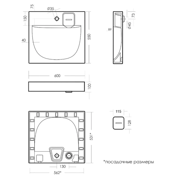 Готовых отверстий для смесителя