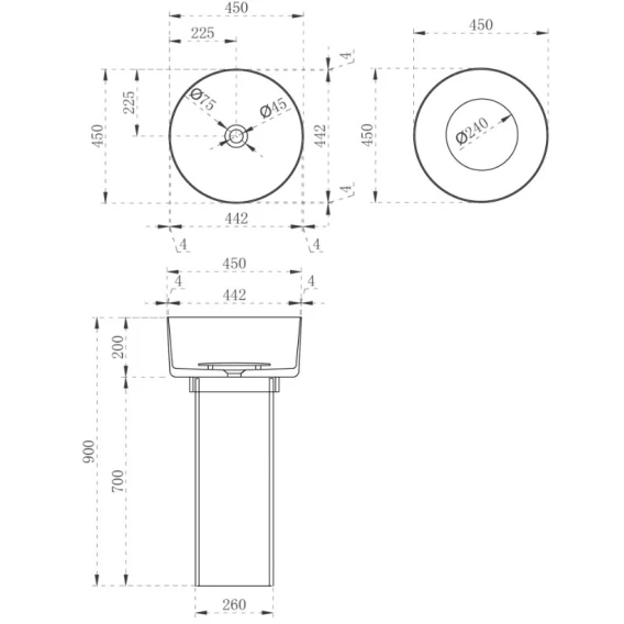 Глубина 45 см