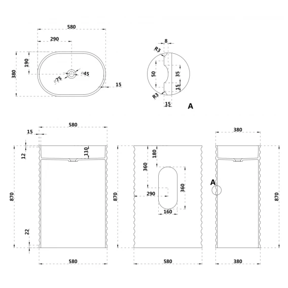 Раковина напольная 58x38 см Abber Stein AS2550-H