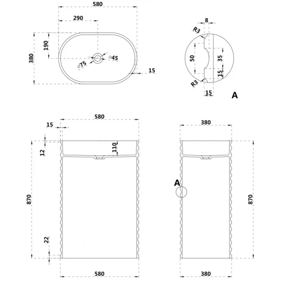 Раковина напольная 58x38 см Abber Stein AS2550