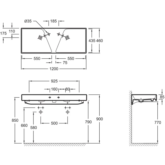 • Двойная подвесная раковина-столешница, гладкая нижняя поверхность