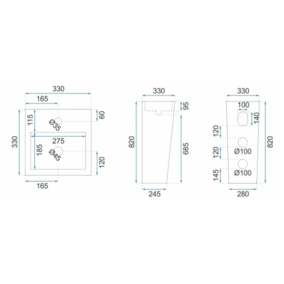 Раковина Rea Kamila REA-U5633 33x33 см, напольная, белый