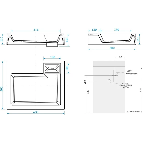 Раковина напольная 45x45 см Abber Kristall AT2701White-Aquamarin