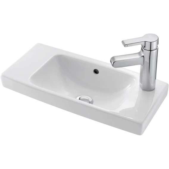 Раковина Odeon Up E 4701R - отверстие для смесителя справа, с переливным отверстием, белая, устанавливается подвесным способом или на специальную мебель для ванной комнаты. Небольшие габаритные размеры делают возможным установку раковины в помещении с ограниченным пространством. Современный дизайн и четкие прямоугольные формы раковины гармонично дополнят общий интерьер помещения.