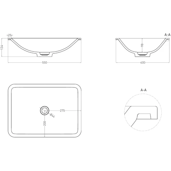 Раковина Salini S-Sense Marea 06 1802106G 55x40 см, встраиваемая снизу, белый глянец
