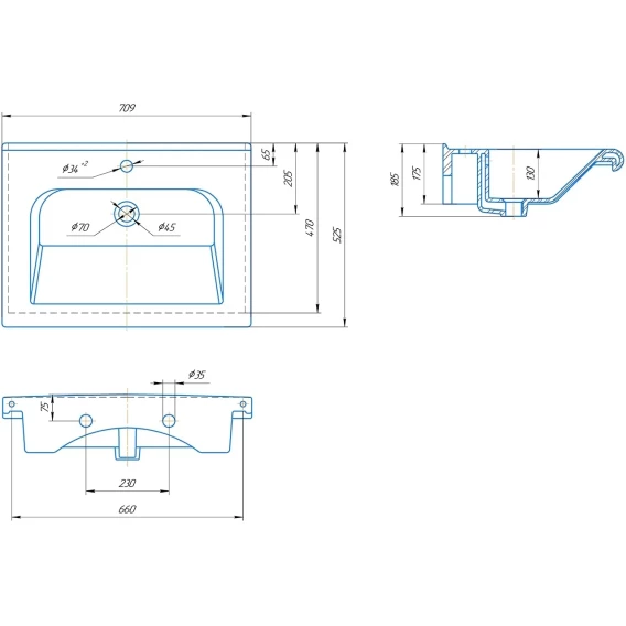 Раковина Санта Леонардо70 70,9x52,5 см, накладная, подвесная, белый