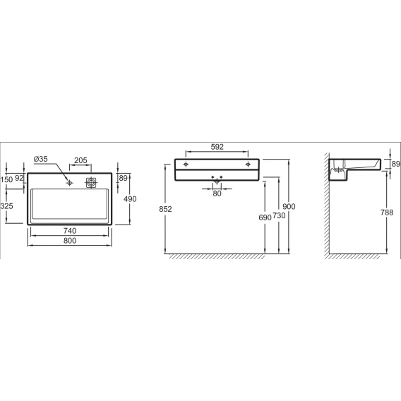 • Раковина-столешница 80х49 см