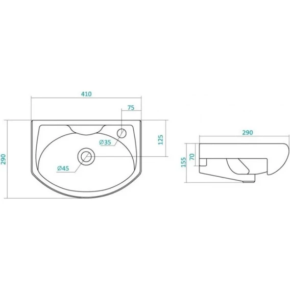 Раковина Style Line Азов ЛС-00000161 41x29 см, накладная, подвесная, белый