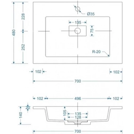 Раковина Style Line Line СС-00002495 70x48 см, накладная, белый
