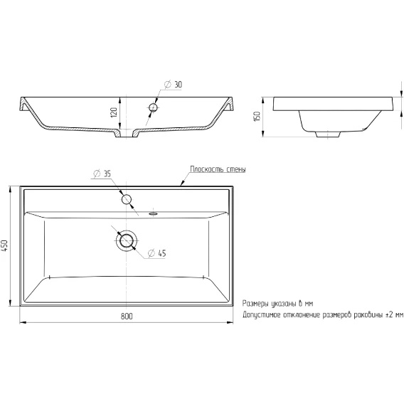 Глубина 45 см