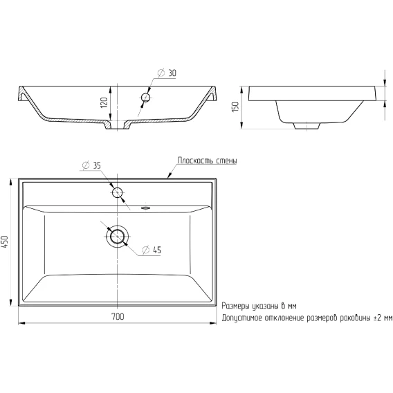Глубина 45 см