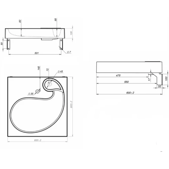 Намеченных отверстий для смесителя