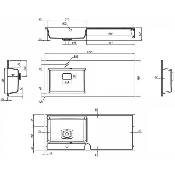 Раковина Uperwood Cosmos RCosmos120LS 120x48 см L, над стиральной машиной, без кронштейнов, серый шелк